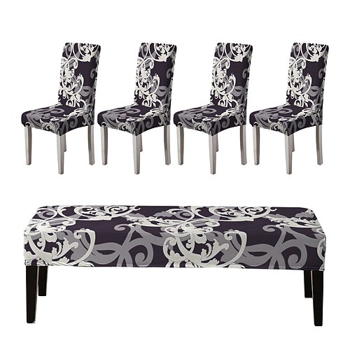 Set di fodere per sedie da pranzo e fodere per panche stampate, adatte per sedie da pranzo, include 5 pezzi, 4 fodere per sedie e 1 fodere per panca.