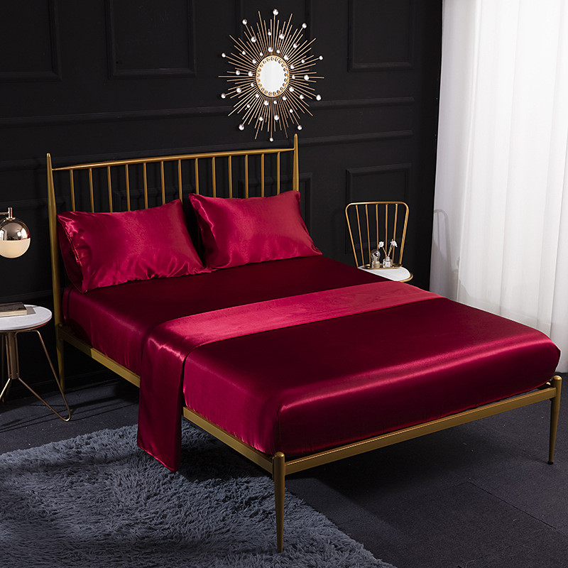 Ice Silk Bed Sheet Single Piece Satin Cloth Cool Silk Bed Sheet Imitation Silk Bed Sheet Pillowcase Three-piece Set