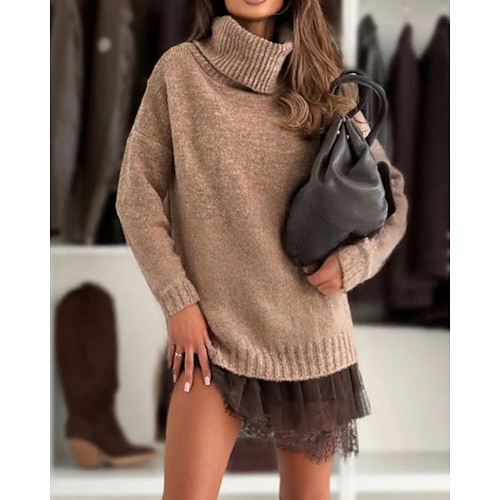 Per donna Mini Abito Abito in maglia Set di vestiti Moderno Quotidiano All'aperto Uscire Vestibilità comoda Semplice Manica Lunga Dolcevita Bianco Marrone chiaro Cachi Rosa Autunno Inverno