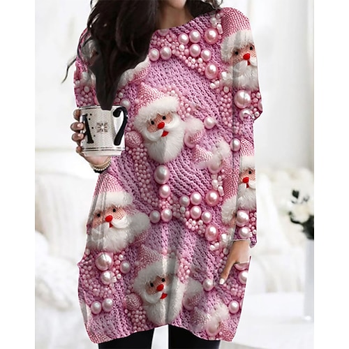 Per donna Mini Abito Abito di Natale Abito Stampato Moda Moderno Quotidiano All'aperto Vacanza Vestibilità regolare Ritratto Manica Lunga Girocollo Viola chiaro Autunno Inverno