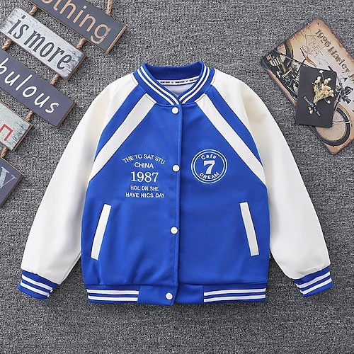 Bambino Da ragazzo Giacca di pelle Capispalla Alfabetico A strisce Manica lunga Cappotto Giornaliero Cotone Attivo Verde Nero Blu Inverno Autunno 4-13 anni