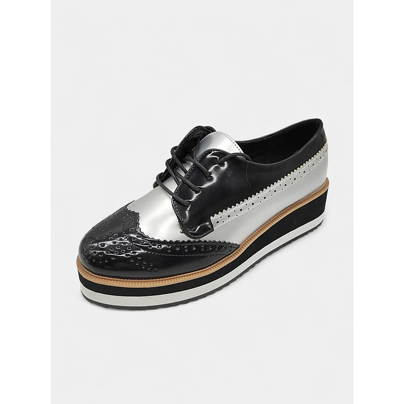 Men's Silver Metallic Oxford Brogue Shoes - Shiny Lace-Up Dress Shoes with Rugged Sole for Formal Events and Parties