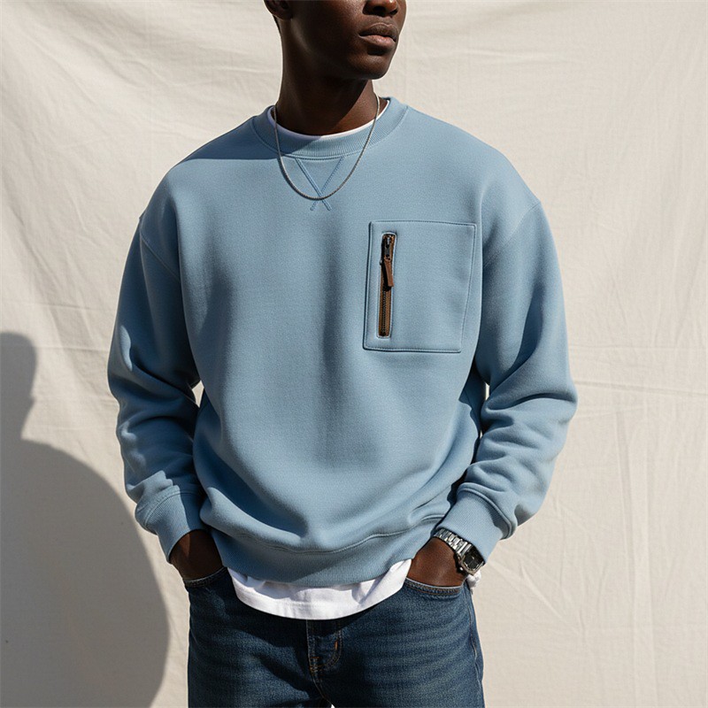 Men's Sweatshirt Orange Green Light Grey Dark Gray Light Blue Crew Neck Plain Pocket Casual Daily Holiday non-printing Casual Fall Winter Clothing Apparel Hoodies Sweatshirts Long Sleeve