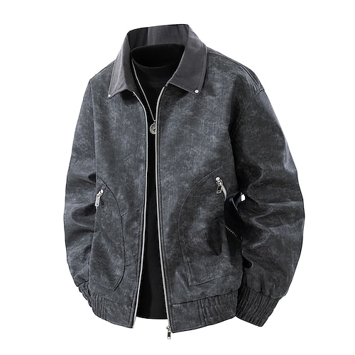 Per uomo Giacca in Ecopelle Giacca da Moto All'aperto Casuale Giacca a Vento Stile Moderno Autunno Inverno Tinta unica Punk Attivo Regolare Marrone Grigio chiaro Grigio scuro Giacca