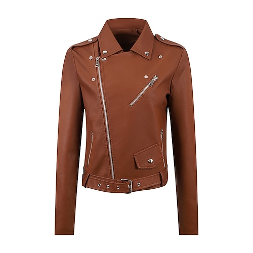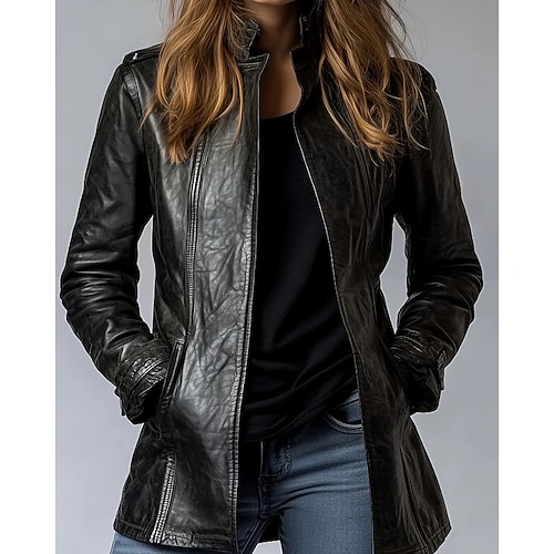 Per donna Giacca in Ecopelle Giacca da Biker Caldo Confortevole Cerniera Tasca Casual Tinta unica Vacanza Streetwear Casuale Abbigliamento quotidiano Regolare Collo ripiegato Vestibilità regolare