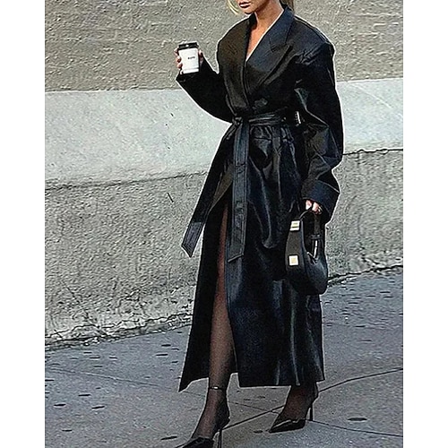 Per donna Giacca in Ecopelle Trench Trench in pelle Caldo Confortevole Tasca Bottoni Moda Semplice Formale All'aperto Vacanza Casuale Lungo Collo ripiegato Vestibilità regolare Manica Lunga Capispalla