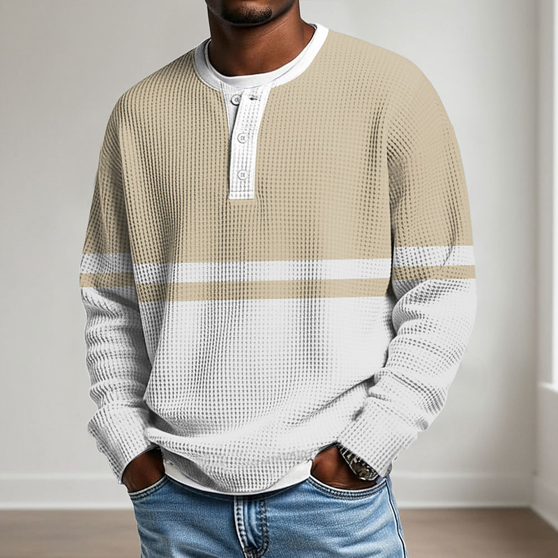 Men's Graphic Geometric Color Block Waffle Henley Shirt Casual Style Classic Style Long Sleeve Fashion Designer Basic Casual Daily Outdoor Spring Spring Fall Light Green Light Blue Purple Khaki