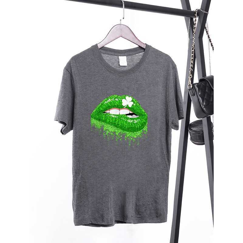 St. Paddy's Day St. Patrick's Day Women's T Shirt Lip Shamrock Fashion Short Sleeve Round Neck Regular Tops Casual St.Patrick's Day Print Grass Green Black White Green Light Grey Spring Summer