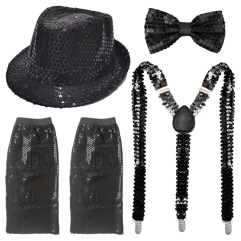 Carnival Costume Disco Carnival Fancy Costume Panama Hat Y-Back Suspenders Retro Vintage 1980s Sequins Adults' Men's Women's Unisex Halloween Carnival Party Performance Dance Ballet Easy Carnival