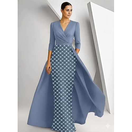 Linea ad A Lunghezza alla caviglia Vestito da Festa Abito da Cocktail Abito da invitata a nozze Abito da cerimonia per signora Manica 3/4 Scollo a V Elegante Lussuoso Brillare Splendere Cocktail
