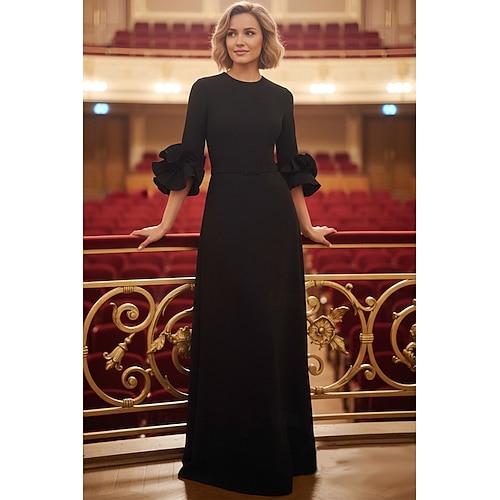 Linea ad A Lunghezza al pavimento Abito da invitata a nozze Abito Formale Abito da sera Abito da cerimonia per signora Manica 3/4 Girocollo Elegante Formale con Volant