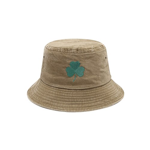 Damen-Baumwoll-Bucket-Hat im Used-Look mit Kleeblattstickerei, lässiger, mehrfarbiger Sonnenhut im Vintage-Stil, weiche, atmungsaktive Outdoor-Kappe für den St. Patrick's Day und den Alltag.
