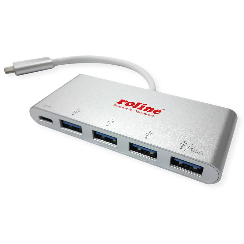 ROLINE USB 3.2 Gen 1 Hub, 4fach, Typ C Anschlusskabel, mit 1 PD-Port