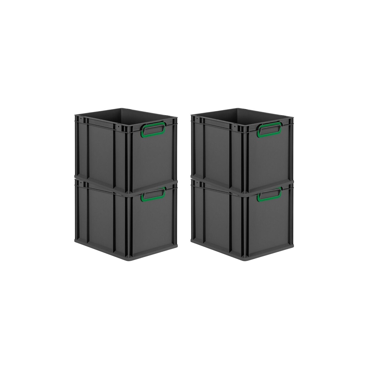 PROREGAL SuperSparSet 4x Eurobox NextGen Color, HxBxT 32x30x40cm, 30 Liter, Griffe grün zu, Schwarz, Eurobehälter, Transportbehälter