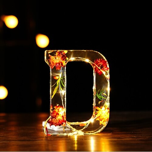 1 pz 11,5 cm 26 lettere luce notturna a led, luce calda per decorazione da tavolo a forma di fiore secco, luce ornamentale, luce decorativa per feste di compleanno, matrimonio, Halloween, Natale
