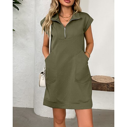 Per donna Mini Abito Abito a Tubino Moda Classico Moderno All'aperto Vacanza Ferie Vestibilità regolare Semplice Manica Corta Colletto a Camicia Nero Bianco Verde militare Blu Autunno