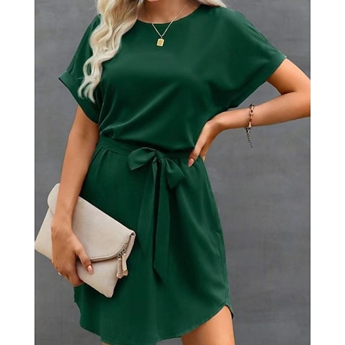 Per donna Mini Abito Vestito Casual Abito Estivo Elegante Moda All'aperto Ferie Data Vestibilità regolare Semplice Manica Corta Girocollo Nero Blu Rosso rosa Estate Primavera