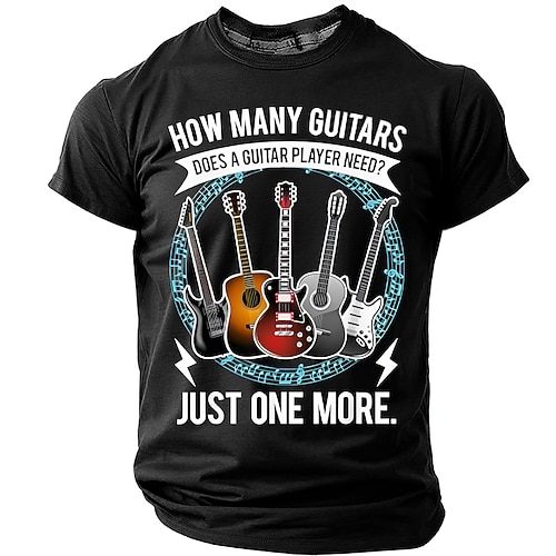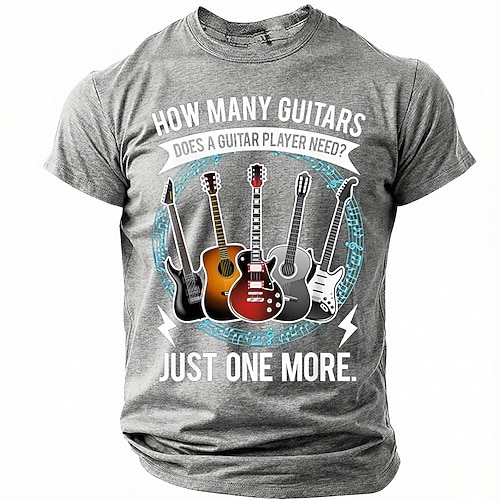 Wie viele Gitarren braucht ein Gitarrist nur noch eine? Lustiges T-Shirt mit Vintage-Musikinstrumenten-Motiv – das perfekte Geschenk für Gitarristen und Väter. Größen: S, M, L, XL, XXL, XXXL