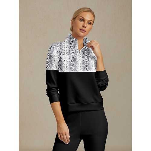 Per donna Felpa da golf Nero con Bianco Manica Lunga Top Abbigliamento da golf da donna Abbigliamento Abiti Abbigliamento