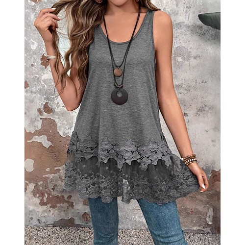 Per donna Blusa Semplice Casual Senza Maniche Girocollo Top Regolari Quotidiano Ferie Uscire Pizzo Nero Grigio Estate Primavera