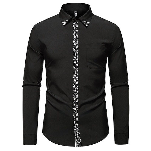 Per uomo Camicia Camicia elegante Camicia con Bottoni Floreale Matrimonio Feste Nero Bianco Manica Lunga Bavero Primavera Autunno Abbigliamento Patchwork