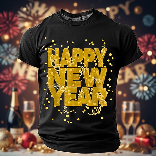 Neujahr Herren glückliches neues Jahr Feuerwerk 2026 T Shirt Kurzarm T-Shirt 3D-Druck Rundhalsausschnitt Hemd Übertrieben Designer Künstlerisch Party Straße Club Blau 1# Schwarz Rote Herbst Winter