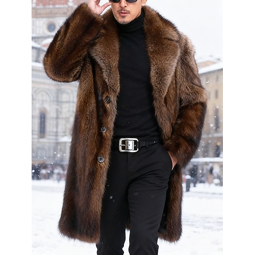 Per uomo Giacca Invernale Cappotto in Pelliccia Sintetica Vacanza Quotidiano Calore Termico Pile Autunno Inverno Semplice Moda Streetwear Bavero Lungo Nero Marrone Giacca