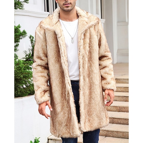 Per uomo Giacca Invernale Cappotto in Pelliccia Sintetica Vacanza Quotidiano Calore Termico Pile Autunno Inverno Semplice Moda Streetwear Bavero Lungo Nero Bianco Giallo Cammello Marrone Giacca