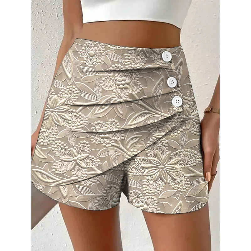 Women's Chinos Shorts Vacation Vintage Ethnic Style Short High Waist Floral Graphic Pleated Micro-elastic Vacation Street Daily Robin's Egg Blue Red Green Khaki Summer Spring Regular Fit