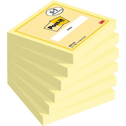 Post-it Haftnotizen 76 x 76 mm Kanariengelb 100 Blatt 5 Blöcke + 1 Gratis