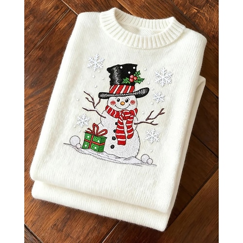 Per donna Felpa Maglione Quotidiano Casual Grafico Pupazzo di neve A Coste Girocollo Lavorato a maglia Stampato Manica Lunga Top Regolari Maglia Natale All'aperto Weekend Bianco Autunno Inverno