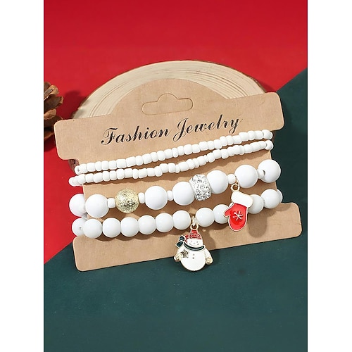 Set di braccialetti natalizi da donna con perline e ciondoli a forma di Babbo Natale, renna e pupazzo di neve, braccialetti elastici con perle rosse e verdi, regalo di gioielli per le feste per lei