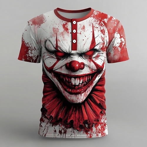 Herren Gruseliger Clown Clownsmaske Menschliches Gesicht T Shirt Henley Hemd Kurzarm Designer Retro Vintage Grafik Straße Lässig Täglich Sommer Frühling Ganzjahres 1# 2# 3# Henley Henley T-Shirt