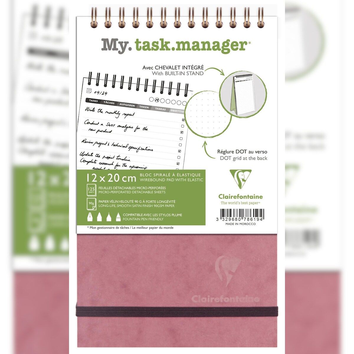 Clairefontaine 5x Age Bag, My.task.manager, Spiralblock 12x20 cm, 250 abtrennbare Seiten (125 Bl) 90g, punktkariert (dot) - Antikrosa 786196C