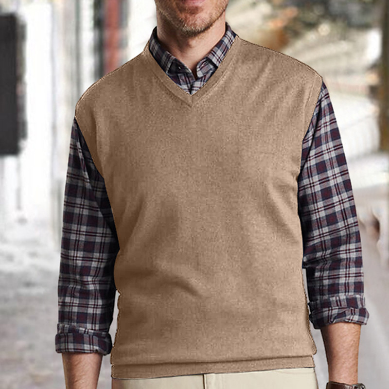 Men's Sweater Vest Dress Sweater Pullover Ribbed Knit Regular Tops Knitted Plain V Neck Modern Contemporary Work Daily Wear Clothing Apparel Sleeveless Winter Camel Wine S M L