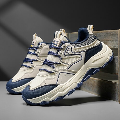 scarpe da trekking da uomo beige e blu navy con suola in gomma spessa - calzature di supporto per avventure all'aria aperta