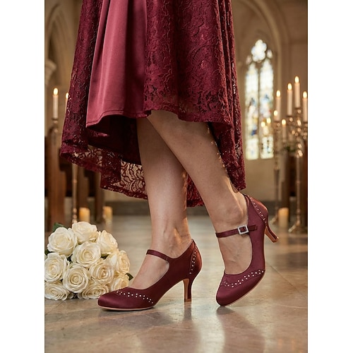 Scarpe da donna con tacco a spillo, modello Mary Jane, e cinturino in cristallo: eleganti décolleté con tacco a gattino per matrimoni e serate