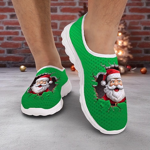 scarpe slip-on da uomo con Babbo Natale - design natalizio con Babbo Natale, comode calzature invernali per feste di Natale, relax e vacanze