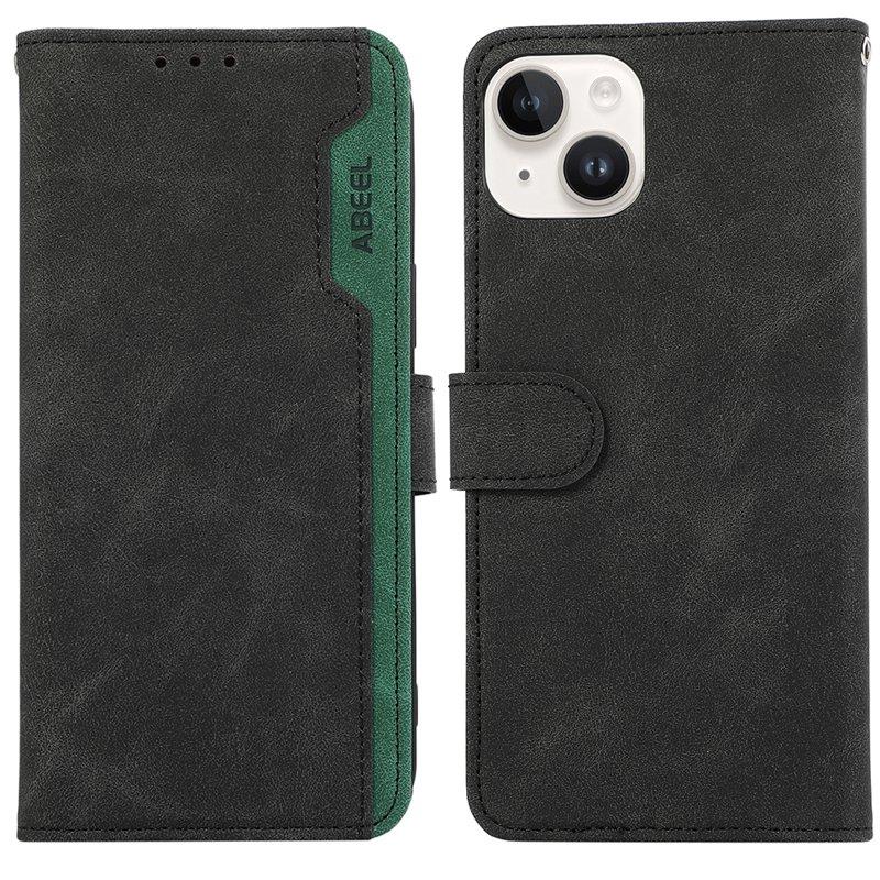 ABEEL iPhone 14 Plus Plånboksfodral Konstläder RFID Skydd Ställ - Svart