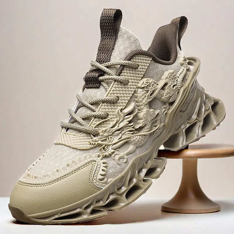 Men's Beige Lace-Up Sneakers with Textured Sole – Sporty Casual Shoes for Walking, Travel and Everyday Outfits