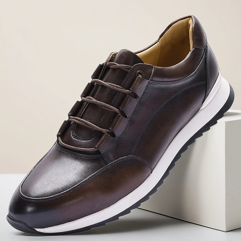 Men's Brown Dress Sneakers – Genuine Leather Hybrid Lace-Up Shoes with Sport Sole, Comfortable Formal Casual Footwear for Business and Daily Wear