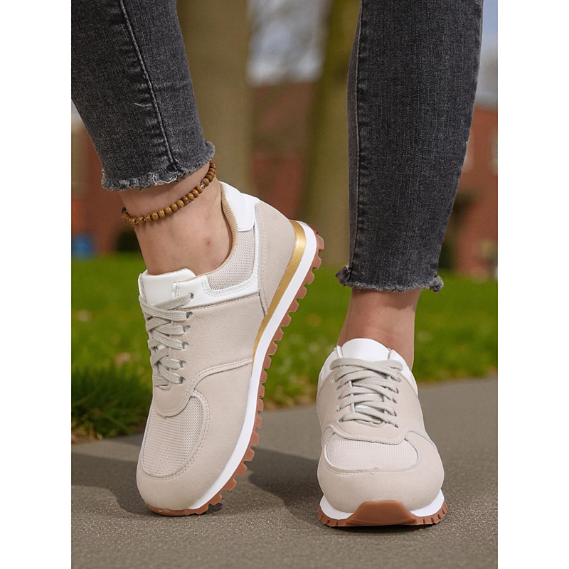 Women's Beige Classic Retro Jogger Sneakers – Casual Low Top Lace-Up Walking Shoes with Non-Slip Sole for Daily Wear, School Travel