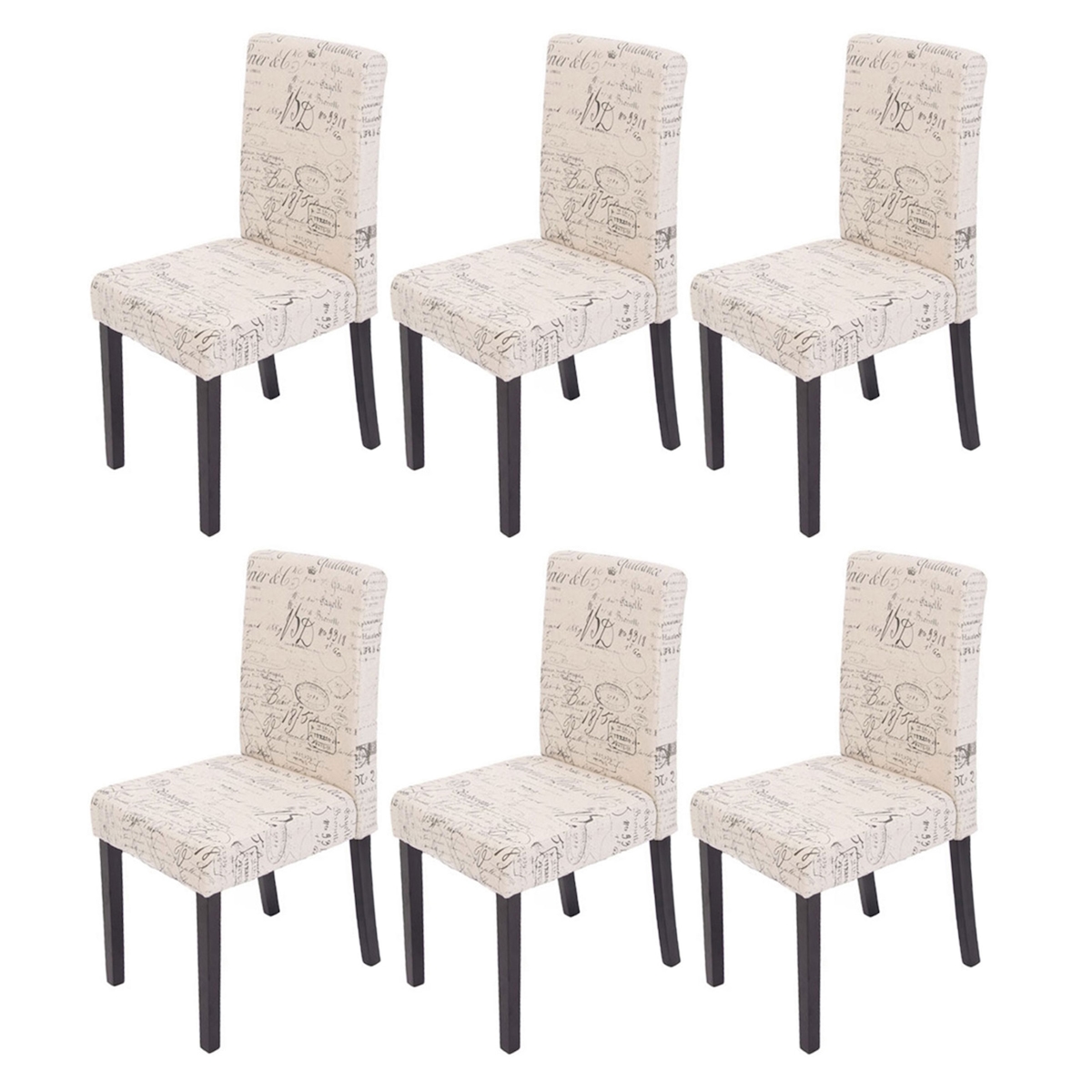 Mendler 6er-Set Esszimmerstuhl Stuhl Küchenstuhl Littau ~ Textil mit Schriftzug, creme, dunkle Beine