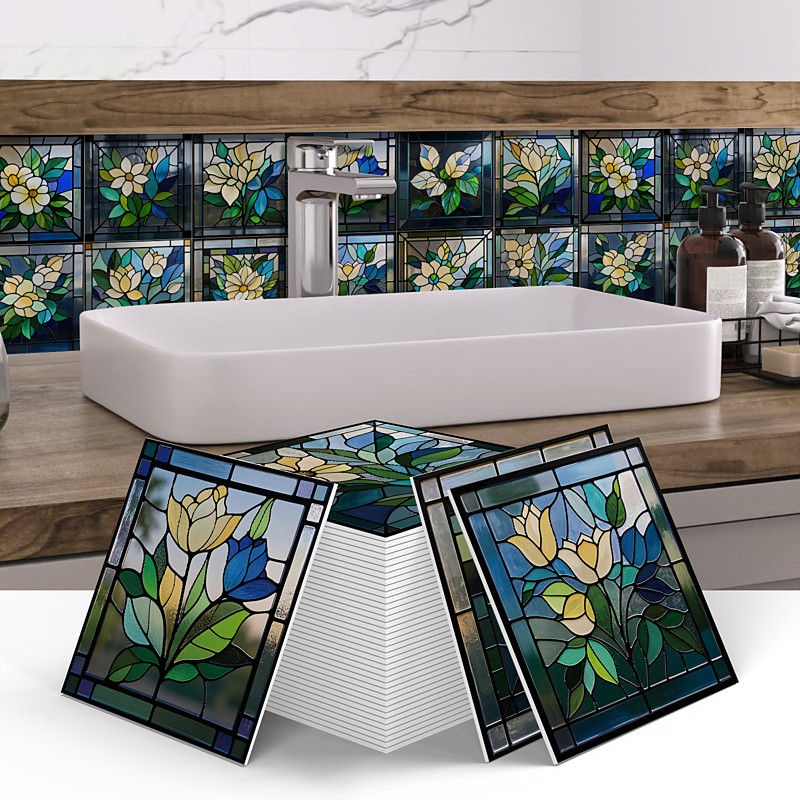 24pcs Moroccan Style Tile Stickers, Thickened Crystal Film PVC Wall Decals, Waterproof Oil-proof, Removable Retro Tile Wall Decor for Bathroom Kitchen Vintage Home