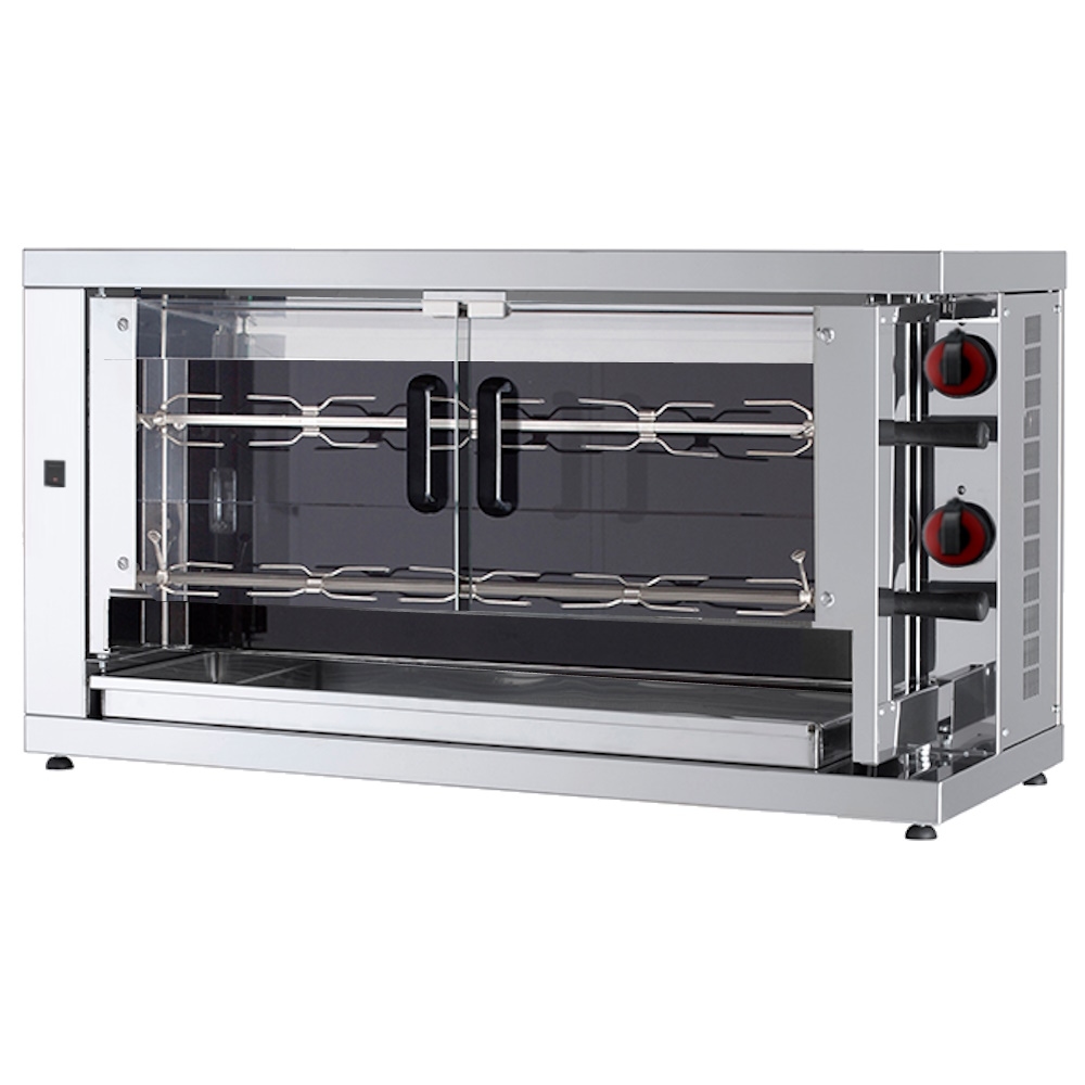 Vitrokeramik hähnchengrill 2 schwerter = 10/12 hühner - 1100x450x600 mm - 8400 W 400/3V - 53104021 Eurast