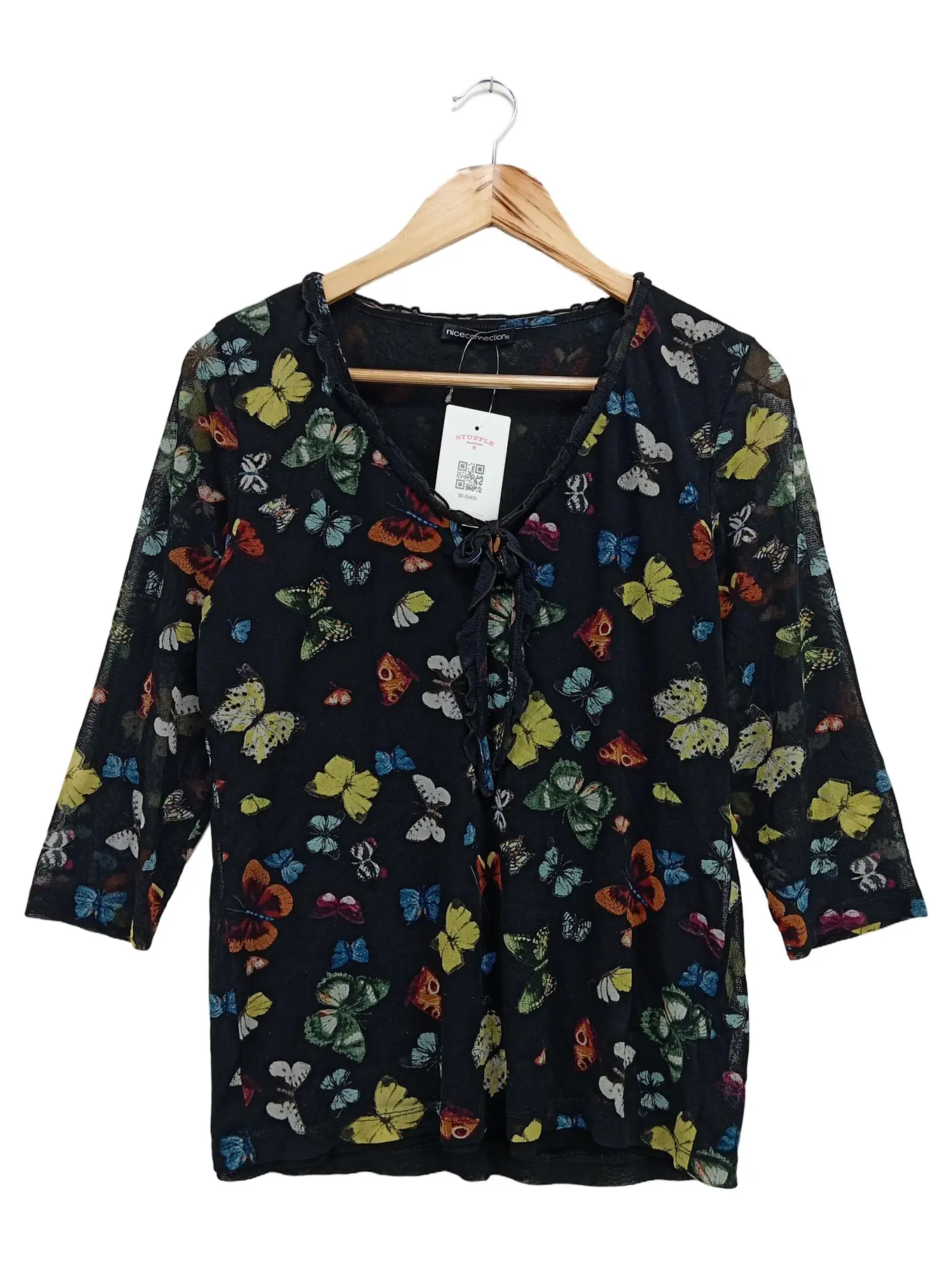 NICE CONNECTION Bluse 46 XL Schwarz Schmetterlinge