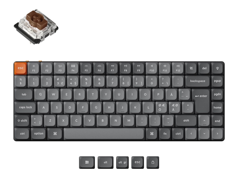 Keychron K3 MAX - Tastatur - QMK/VIA, custom mechanical, ISO layout collection - 75% - compact - belyst - trådløs - Bluetooth 5.1, 2.4 GHz, USB - QWERTY - Nordisk - tastsvitsj: Gateron Low Profile 2.0 Brown (Hot-swappable)