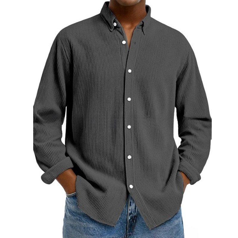 Men's Corduroy Shirt Textured Casual Business Lapel Classic Long Sleeve Vintage Fashion Color Block Pocket Warm Fall Winter Regular Fit Black White Dark Red Light Green Light Blue Navy Blue Corduroy