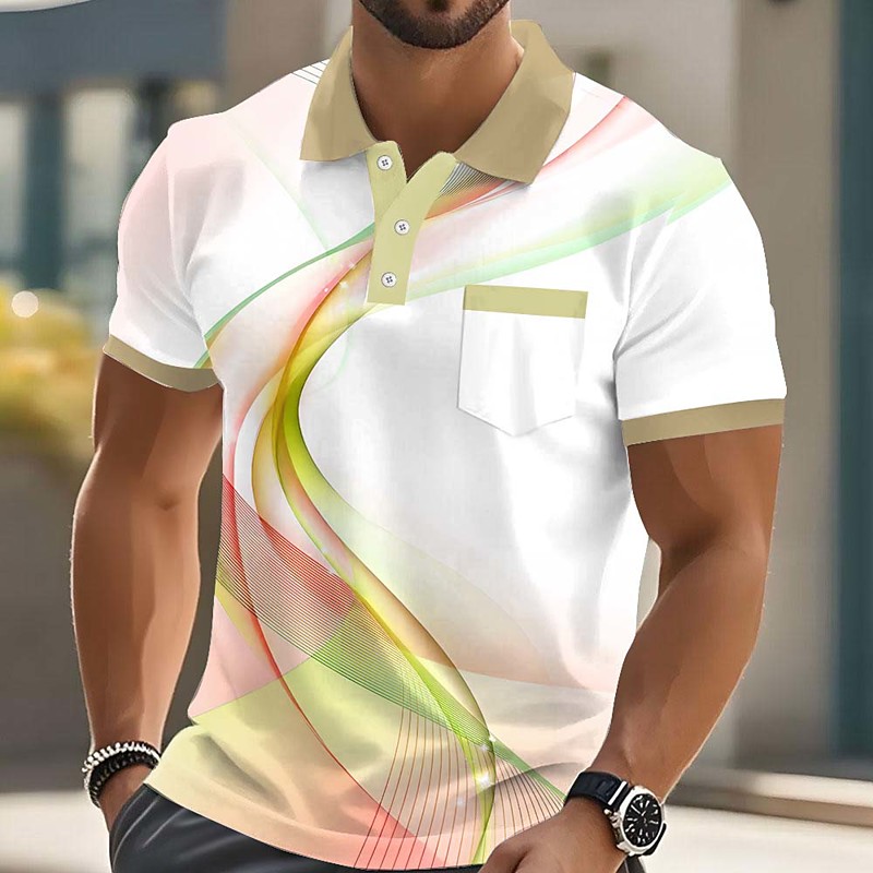 Men's Geometric Line Polo Short Sleeve Polo Shirts Lapel Casual Athleisure 3D Print Buttons Summer Blue Purple Green