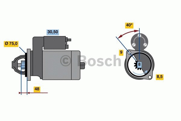 Käynnistin 12V Bosch 0 986 027 010 - citroën, ford, peugeot - OE 1740948, 1745176, 2033120